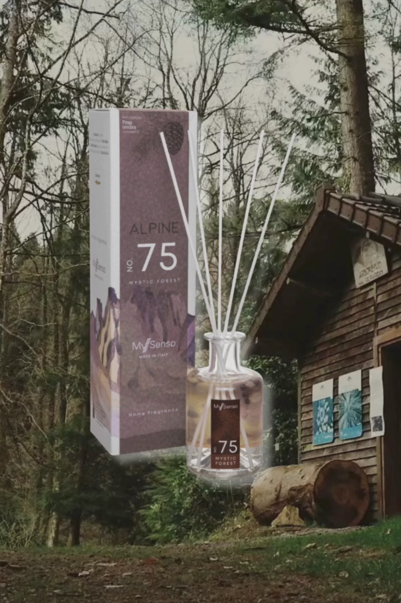 N°75 Mystic Forest evoca il silenzio e l’energia delle foreste alpine, con sentori legnosi, corteccia e resine – perfetto per un’immersione sensoriale nella natura.