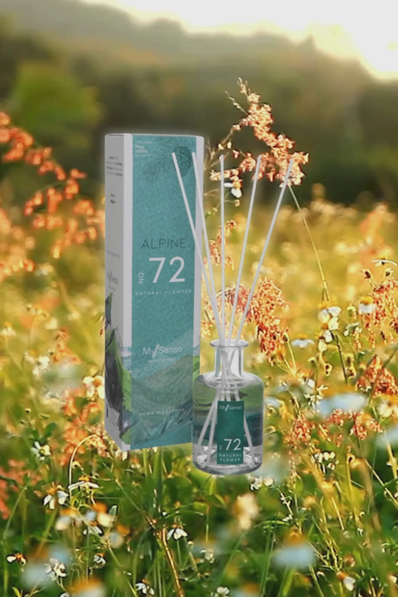N°72 Natural Flowers cattura l’anima dei prati di montagna con essenza biologica di pino cembro alpino e note di fiori bianchi, fieno e muschio.